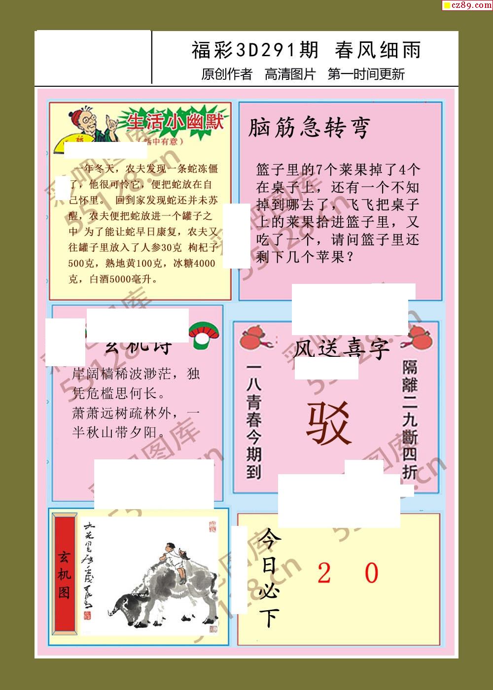 > 25年291期福彩3d春风细雨画报