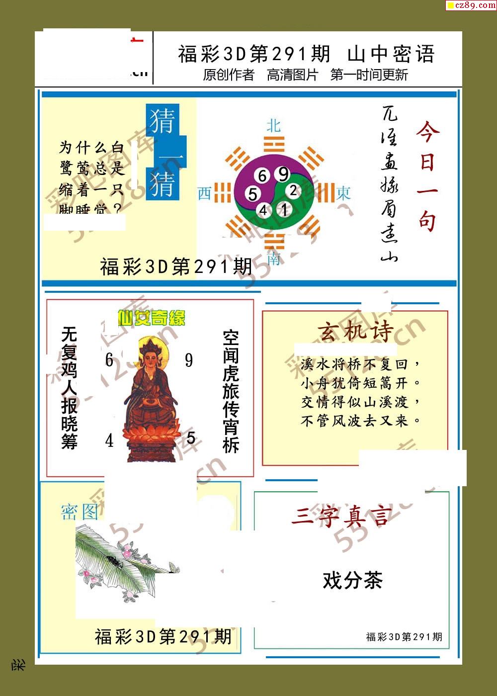 福彩3d25年291期山中密语彩报