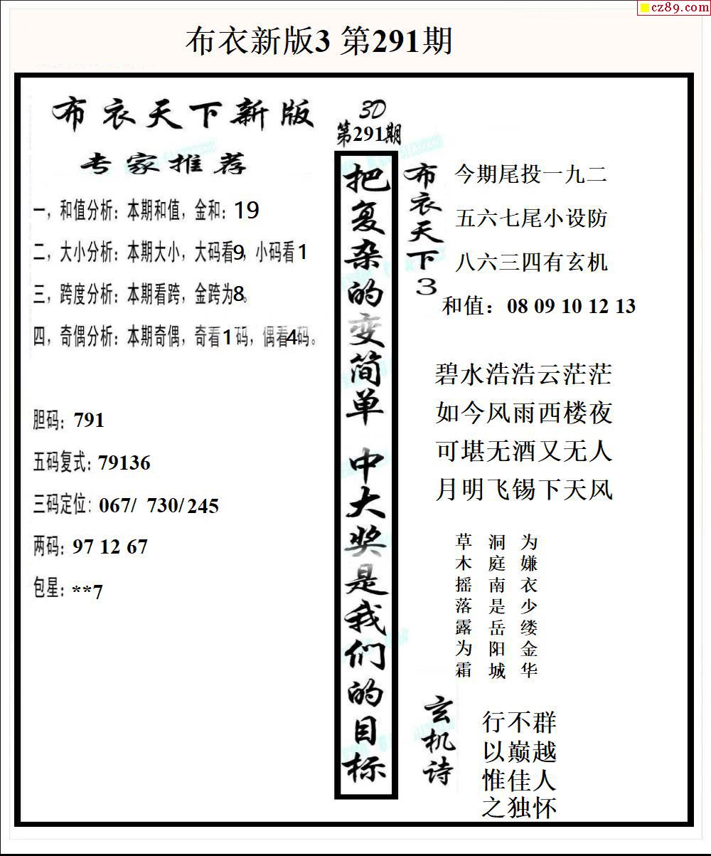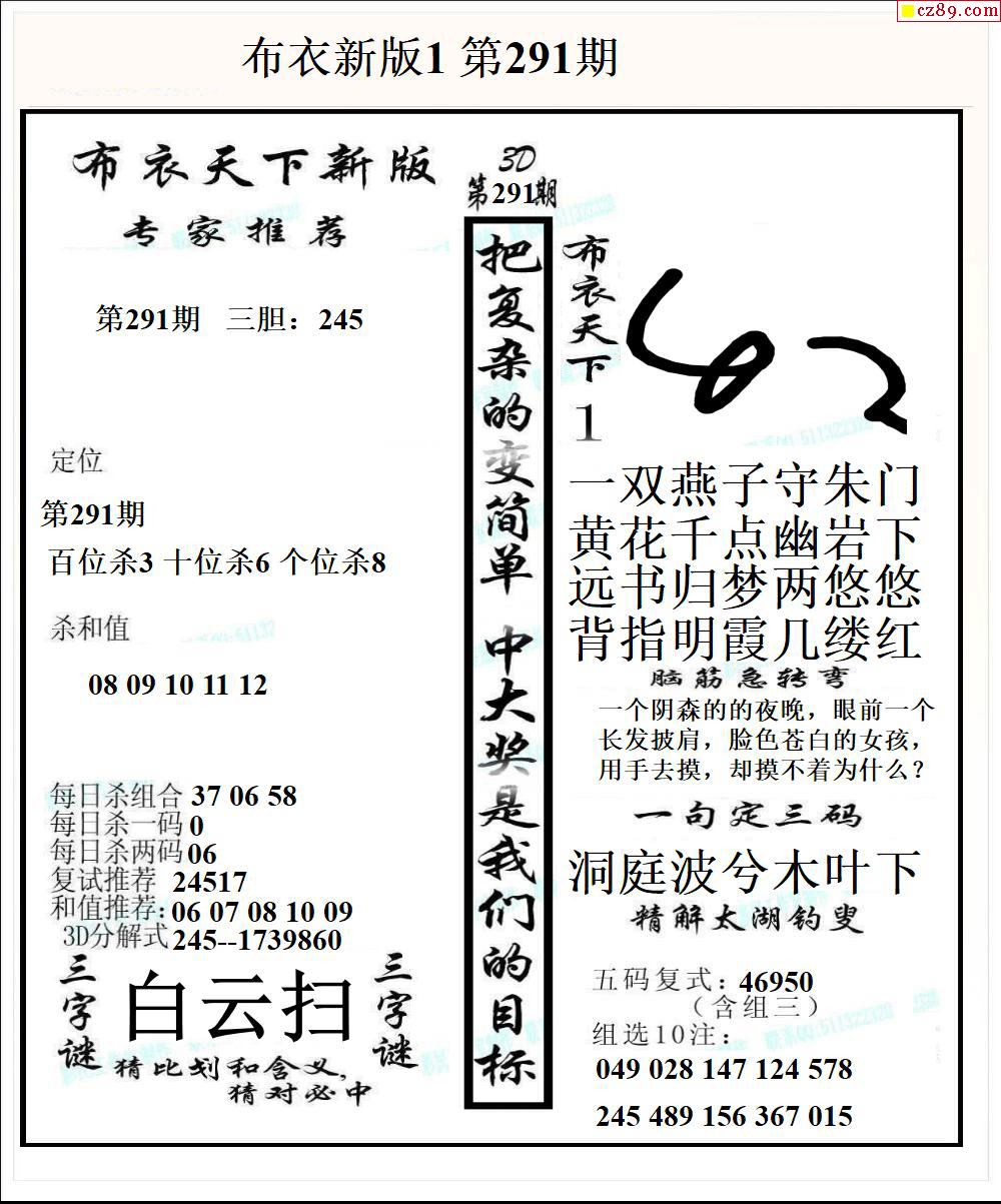 布衣天下新版2025291期3d图谜
