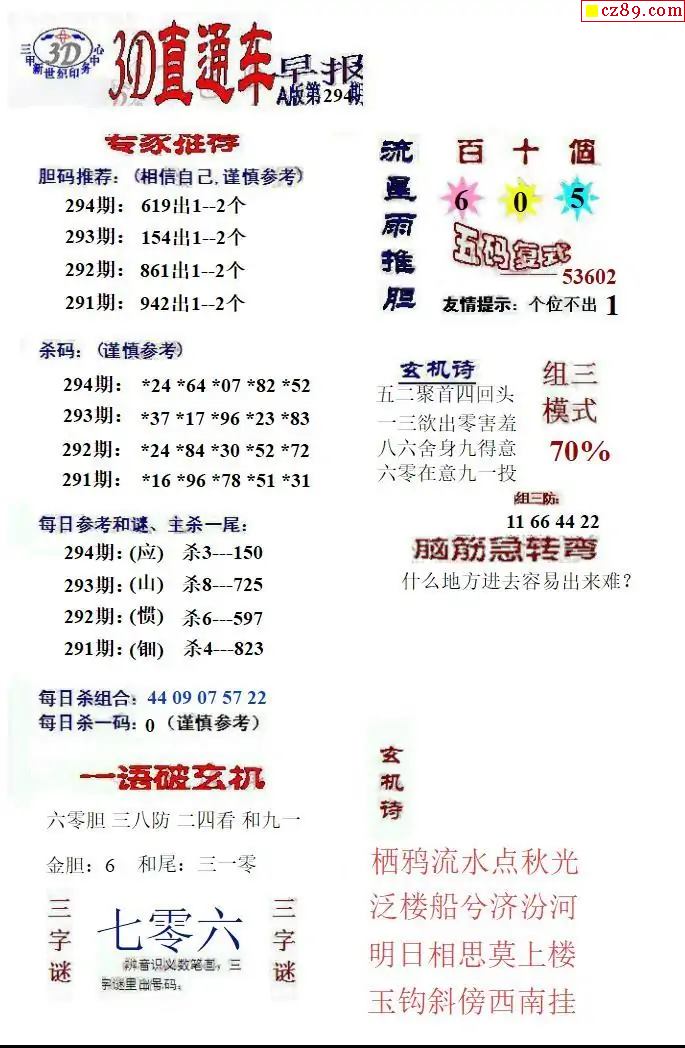 福彩3D2025294期直通车早报ABCD版