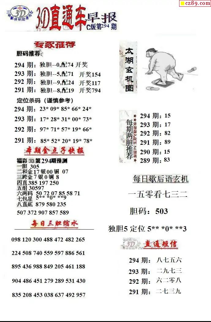 > 福彩3D2025294期直通车早报ABCD版