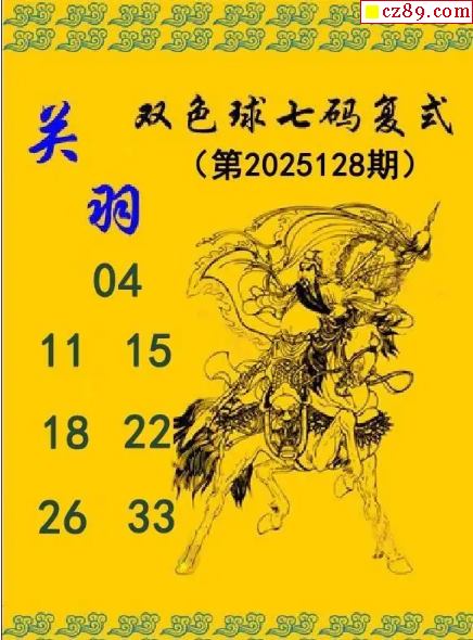 关羽七码复式25年128期双色球图谜