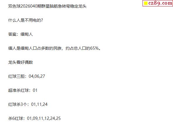 > 26年福彩双色球040期 群星脑筋急转弯定龙头字谜